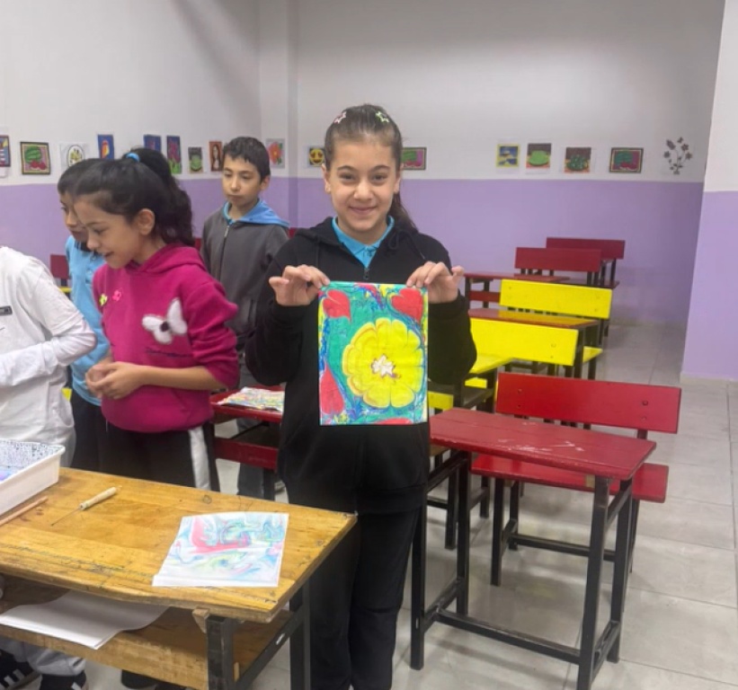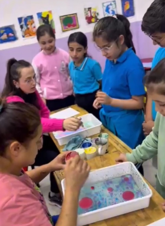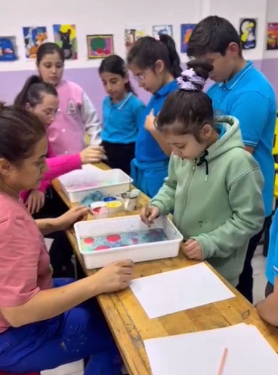 Görsel Sanatlar Öğretmenlerimiz Özgül Güzel Biltekin ve Nuran Canbaz' ın organize ettiği Ebru sanatı etkinliğinde öğrencilerimiz Ebru sanatını uygulamalı olarak gerçekleştirdiler. Oldukça eğlenceli geçen etkinlik öğrencilerin birbirinden güzel çalışmalarının sergilenmesi ile son buldu.